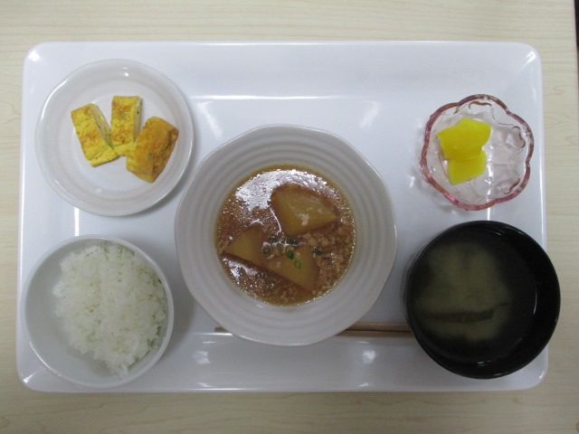 今日のお昼ご飯は大根のそぼろ煮でした?